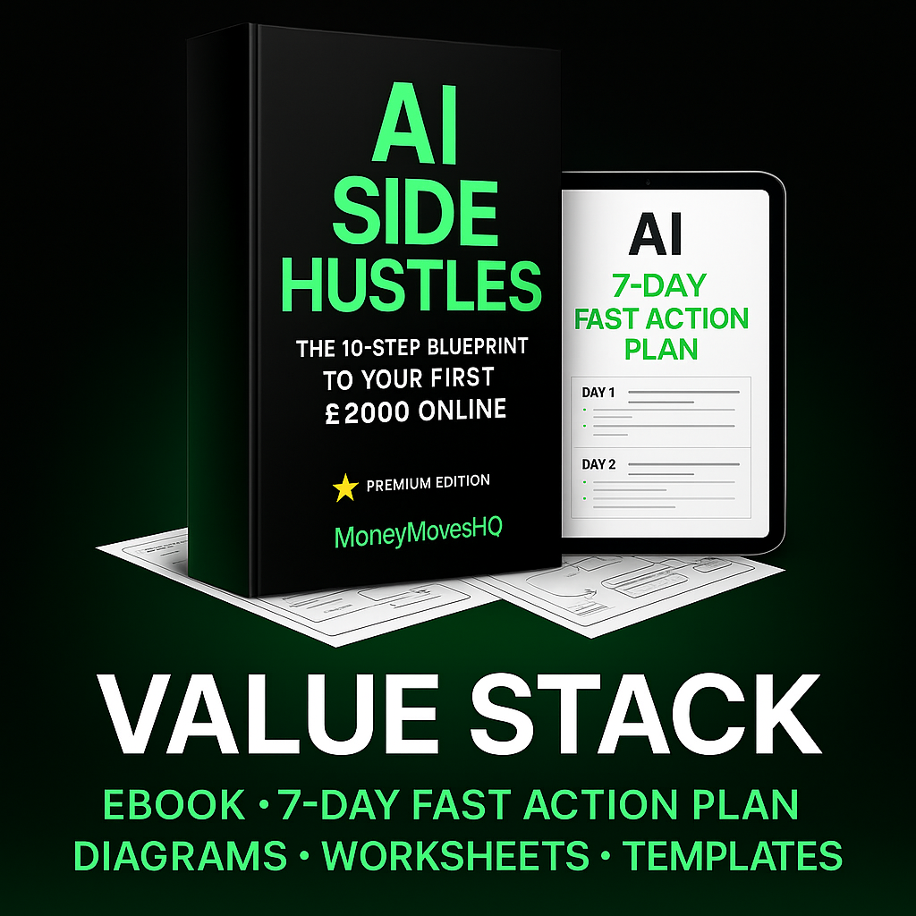 AI Income Accelerator Bundle – MoneyMovesHQ Launch your first AI-powered side hustle and earn your first £2,000 online with this complete plug-and-play digital toolkit.